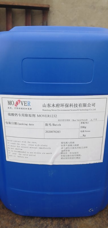 我公司產(chǎn)品硫酸鈣專用清洗劑MOVER1232主要通過(guò)表面活性劑對(duì)垢表面潤(rùn)濕、滲透,新型螯合劑增溶,聚合物螯合分散,金屬緩蝕劑抑制腐蝕等作用,達(dá)到常溫(25℃)除垢速度快,除垢效率高,無(wú)二次析出沉積,并且易于操作,易于生物降解,具有良好的經(jīng)濟(jì)環(huán)境效益。MOVER1232主要通過(guò)表面活性劑對(duì)垢表面潤(rùn)濕、滲透,新型螯合劑對(duì)垢增溶、垢晶體結(jié)構(gòu)改變,聚合物螯合分散等作用,已達(dá)到膨化疏松,便于水流攜帶或高壓水沖出系統(tǒng),從而達(dá)到以較低的藥劑用量除去更多的污垢,并且此藥劑完全可生物降解。