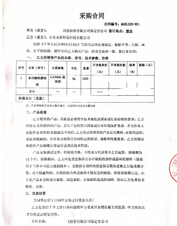 客戶需求---多用酸洗緩蝕劑 LAN826通用型